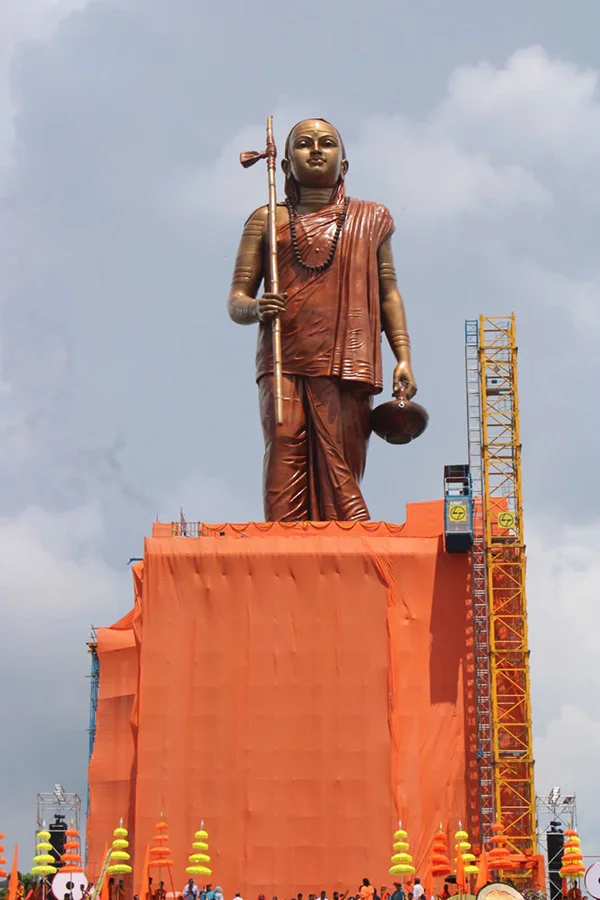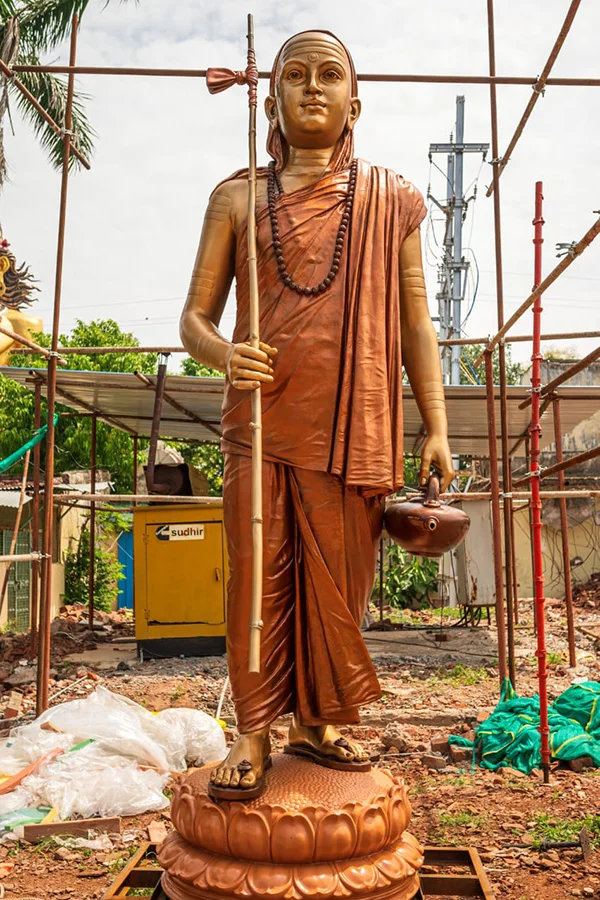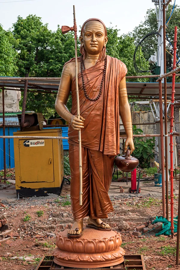 Η διαδικασία χύτευσης αυτού του χάλκινου αγάλματος ύψους 12,5 μέτρων και βάρους 85 τόνων αποτελεί υπόδειγμα σύγχρονης μεταλλοτεχνίας. Η ομάδα Tongqing στην επαρχία Jiangxi χρησιμοποίησε την τεχνολογία «τμηματικής χύτευσης + συνολικής συγκόλλησης» για να αποσυνθέσει το άγαλμα σε 37 ενότητες για ξεχωριστή χύτευση και στη συνέχεια πέτυχε σύνδεση σε επίπεδο χιλιοστού μέσω ενός συστήματος τοποθέτησης με λέιζερ. Μεταξύ αυτών, το μοντέλο της Βεδάντα Σούτρα που κρατάει ο Shankara έχει πάχος μόνο 3 χιλιοστά, αλλά περισσότερες από 2.000 σανσκριτικές γραφές πρέπει να χαραχθούν στην επιφάνεια. Η «μέθοδος μικροσκάλισμα ηλεκτρολυτικής χάραξης» που ανέπτυξε ανεξάρτητα η ομάδα έσπασε με επιτυχία το τεχνικό εμπόδιο.